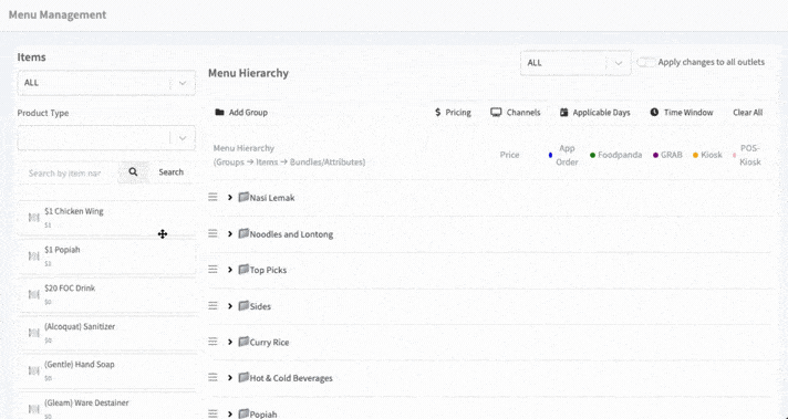 Yes, our Menu Builder allows you to seamlessly manage specific channel pricing and item availability for major delivery platforms like GrabFood and Foodpanda from a single interface.