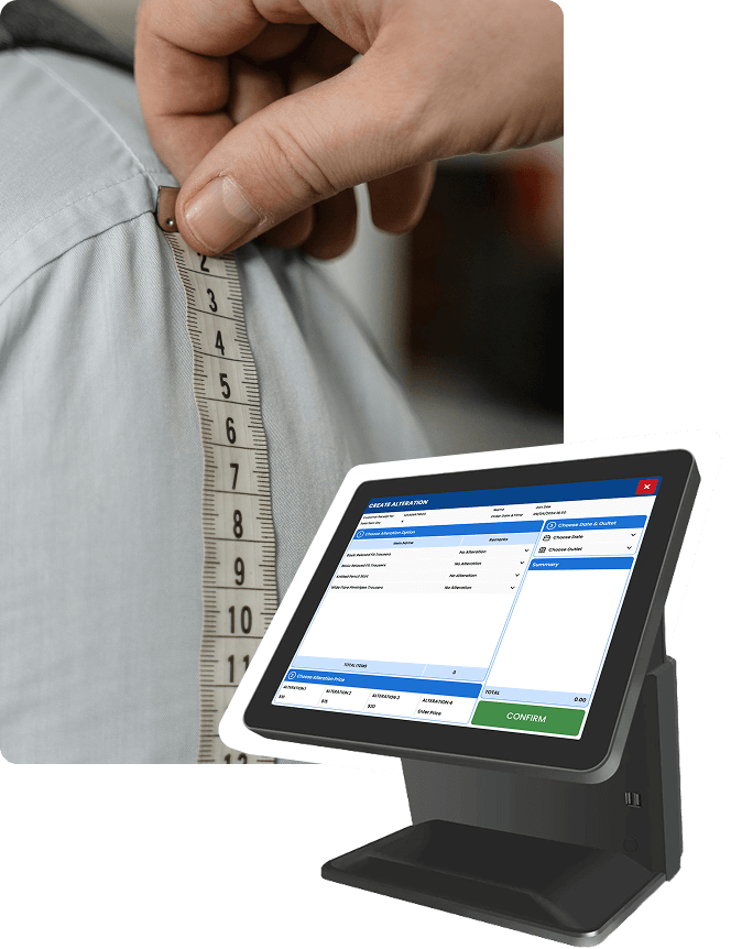 EquipPOS includes a built-in alteration system that tracks every garment from request to pickup across all outlets.